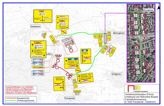 Die Fahrbahn der Kreisstraße K2069 zwischen Cleebronn und Freudental wird weiter saniert und die Herstellung der Amphiebientleiteinrichtung vorgenommen. Hierzu ist eine Vollsperrung der Straße erforderlich. Das Landratsamt Heilbronn hat die Gemeinde Cleebronn nun über die voraussichtliche Dauer der Sperrung informiert.